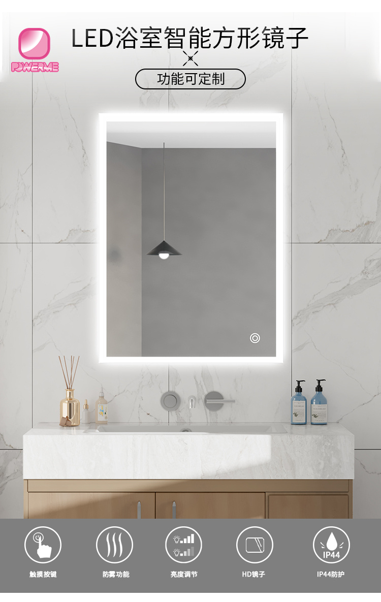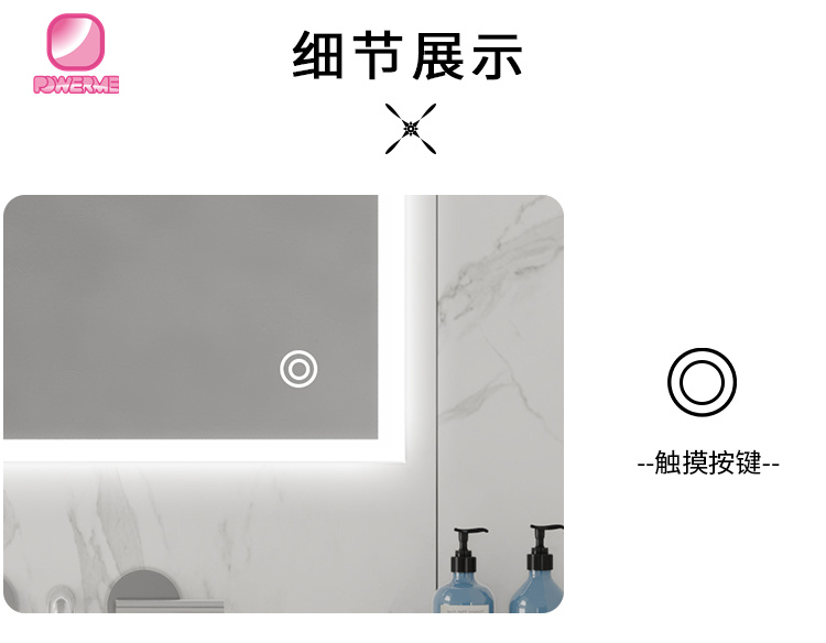 4.鏡面單鍵觸摸開關,無極調節燈光亮度