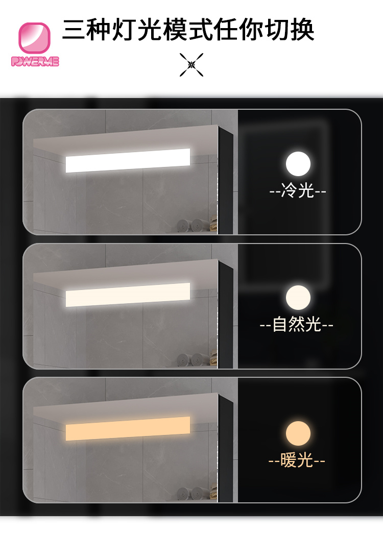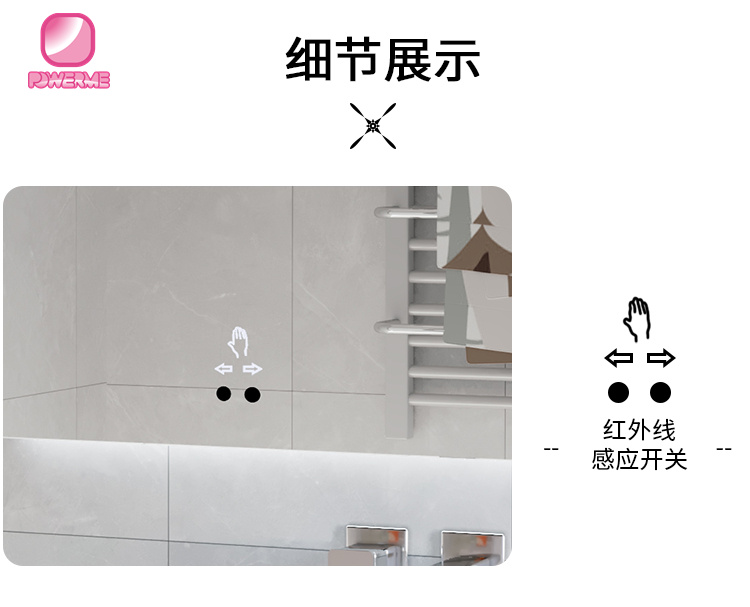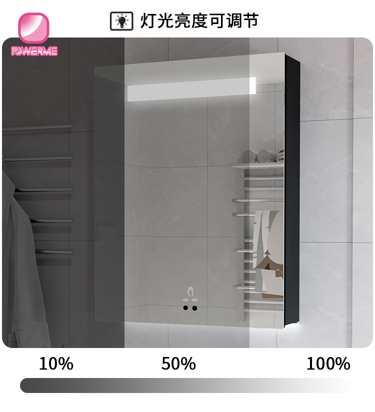 4.鏡面手掃開關,無極調節燈光亮度,帶底燈