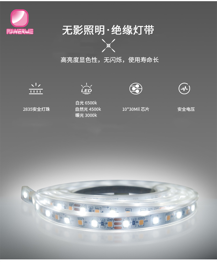 3.卓越的燈光,磨砂寬度為50mm,出光均勻,2835LED燈條,10*30Mil的芯片,超長使用壽命約40000小時節能